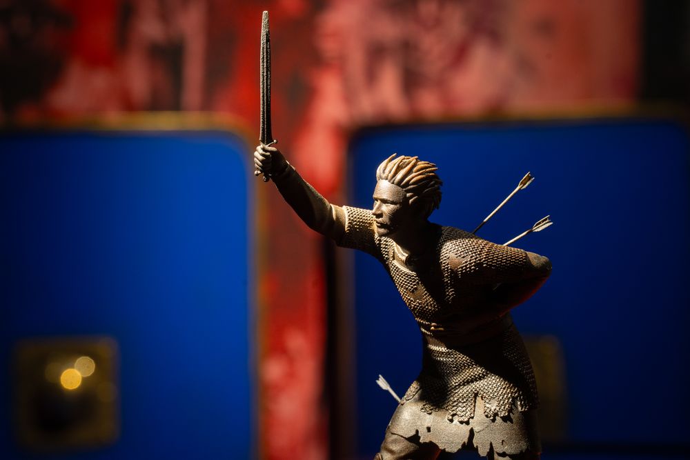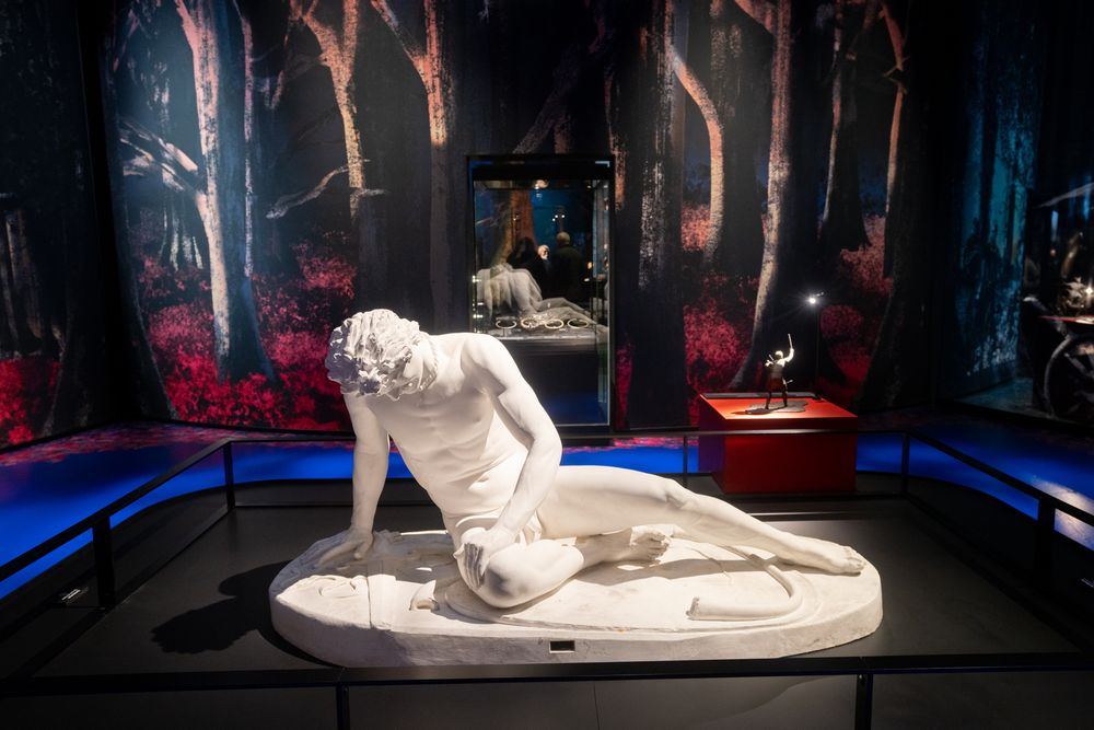 De græske bronzestatuer findes ikke længere. Statuen på billedet er en gipsafstøbning af Julius Cæsars marmorkopi, udlånt af Statens Museum for Kunst, Danmark, til 'Kelternes verden – Europas urkraft' på Moesgaard 2025-2026.